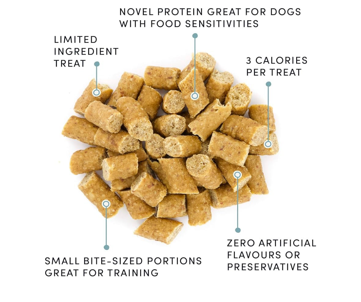 These hypoallergenic treats contain a semi moist texture without any added sugar. Each bite sized morsel is only 3 calories, and packed with flavour making it ideal for the repetitive rewards required during training. Whether you are treating or training these mini trainers are sure to motivate your dog to learn and grow into its full potential.