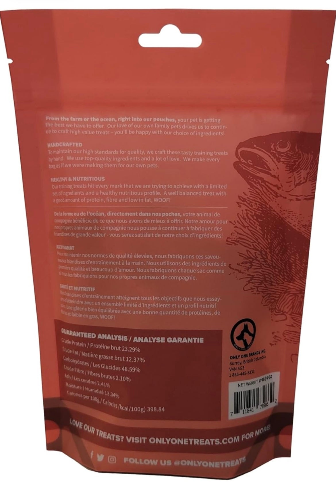 Handcrafted and made with care, our Wild Pacific Salmon Training Treats are made in small batches to ensure their top-notch quality! These treats are healthy, low in fat, gluten-free, and full of flavour! Your pets are going to fall in love with training time!